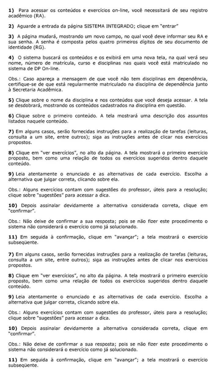 Instruções para acesso dos alunos ao sistema de DP On-Line