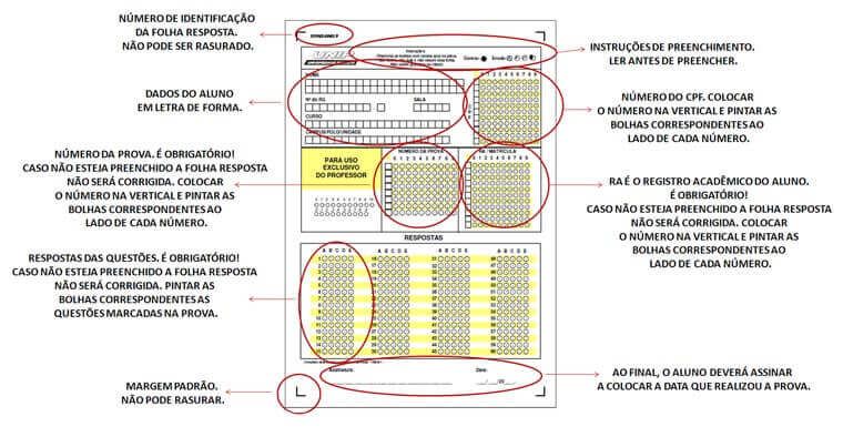Se o erro for no preenchimento do Registro Acadêmico - RA, número da prova e/ou marcação das questões, haverá prejuízo, pois o sistema fará a leitura de dados imprescindíveis de forma errada.