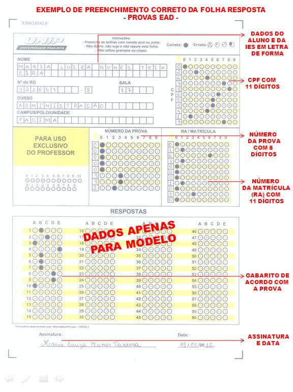Veja abaixo as orientações para preenchimento correto da folha resposta.