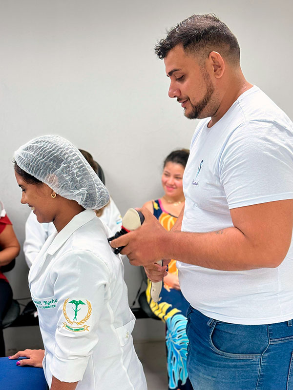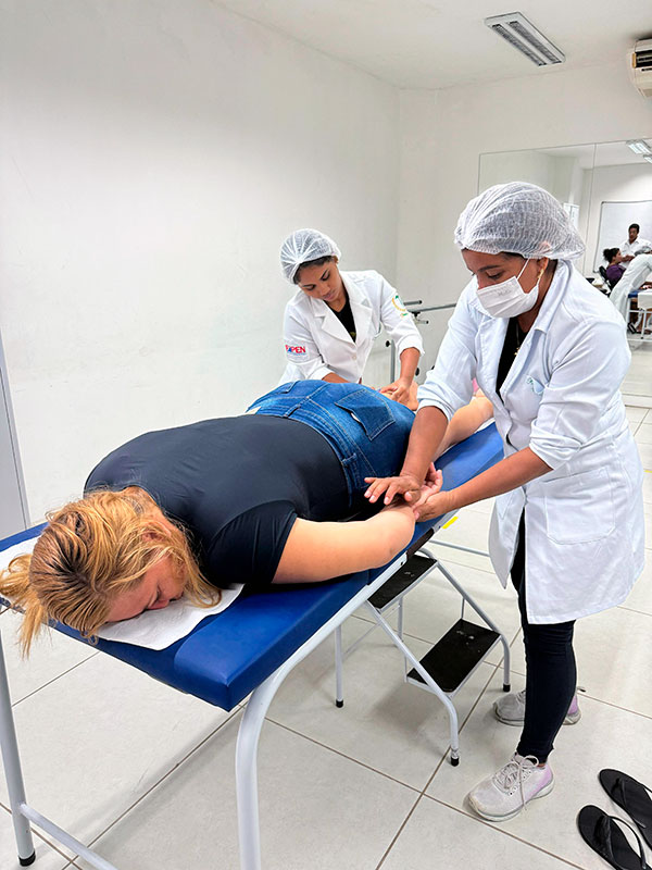 No dia 14 de março, por meio dos (as) alunos (as) do curso de Enfermagem e de Estética e Cosmética, realizou-se a ação os serviços, de testes rápidos, medição de glicemia, aferição de pressão arterial, auriculoterapia, limpeza facial, massagem, designer de sobrancelha, spa dos pés, spa dos lábios, depilação, extensão de cílios e corte de cabelo. A ação foi supervisionada pela Coordenadora do Curso de Enfermagem, professora Mônica Olívia Lopes e a professora Isabel Cordovil. Na ocasião ocorreu também a demonstração nutricional, os 10 passos da alimentação saudável, parte da disciplina de nutrição ministrada pela professora Raissa Sastre.