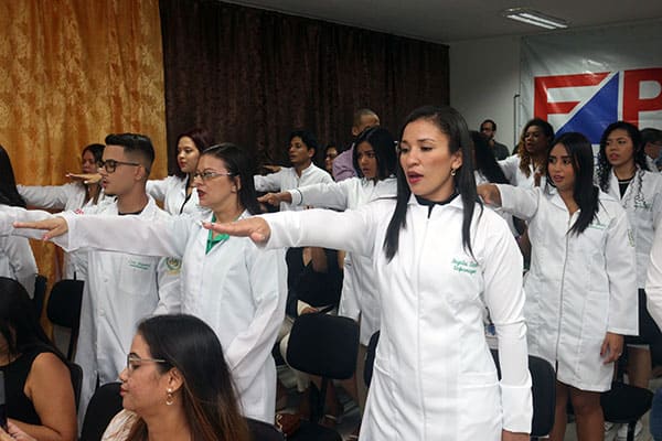 Durante a celebração, os estudantes se comprometem a cumprirem suas obrigações com responsabilidade e respeito, estas simbolizadas no juramento feitos pelos(as) alunos (as). A cerimônia contou com a presença do cerimonialista Will Montenegro, coordenador pedagógico da instituição Fabrício Santa Brígida, coordenadora de enfermagem Mônica Olivia Lopes Sá de Souza e as professoras Maria José do Nascimento e Raíssa Sastre da Costa.